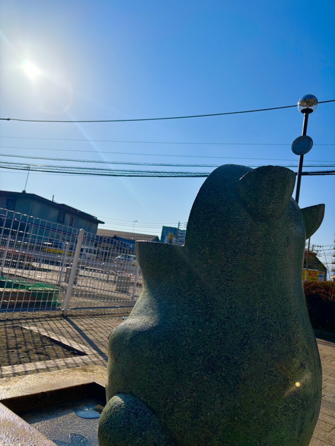 帰り際に立ち寄った公園のカエルさんも温かそうでした。